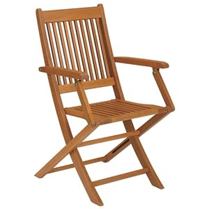 Drink in the sunset from your balcony or patio with this set of folding armchairs from Strathwood, which can be paired with a bistro table that's perfect for meals for two. The chairs are made of a dense and highly durable hardwood in a warm, mahogany brown tone. The chairs have a slatted seat and back, with a slightly tilted angle on the back for maximum comfort. The sturdy, rust-resistant mortise-and-tenon joinery construction will last for many years. Each chair, when unfolded, measures 21 inches wide, 24 inches deep, and 36 inches high, and weighs 18 pounds. The height from the floor to the top of the arm rest is 25.39 inches. The chairs come ready to use; no assembly required.
