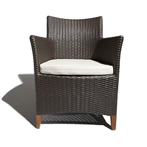 The Strathwood Bistro collection features handsome wicker furniture with superb weather resistance and maintenance-free care, making it ideal for outdoor use. Finished in a warm mocha color, this compact armchair is made of tightly woven flat strips of synthetic wicker. The strands are made from durable polyethylene (PE) resin, which is designed to withstand fading, weathering, and aging within a temperature range of -70C (-94F) to 80C (176F) degrees. The washable wicker strands have a powder-coated finish with a modest sheen that easily sheds drizzle and accidental drips, and its looks will remain unchanged for three years under normal usage.