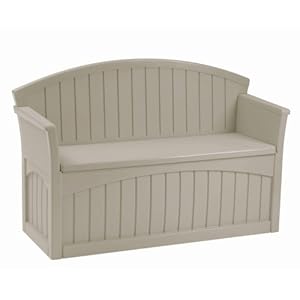 Suncast Patio Bench. Extra storage and seating in one easy - to - assemble solution! Stuff. Own a house long enough and you're going to accumulate a lot of it. That includes "stuff" for your lawn, garden and patio, too. Finding a place to put it all can be a challenge... until now, that is. The Suncast Patio Bench assembles in a flash with NO tools to not only give you a spot for pool supplies, garden tools and furniture cushions, but it provides an extra spot for folks to take a load off as well! The details: Long-lasting resin construction; Stay dry design prevents contents from getting soggy; 50-gallon capacity; Measures 52 3/4 x 34 1/2 x 21" d. Don't let that scattered mess take over your yard this summer! Order yours now! Suncast Patio Bench