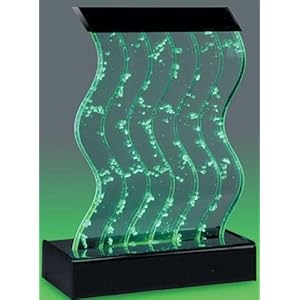 Multi-chambered acrylic panels carry internal light to thousands of dancing bubbles. Black acrylic base provides free-standing support while concealing air pump assembly, light fixture, and interchangeable color filters. In all of our water features, a 110v outlet is required for the quiet, long-lasting, powerful, adjustable-flow pump that is included. All of our items are recirculating and do not need an outside water source. This item is a visual water feature and not a water fountain. It does not offer any water sound as the water is completely encased. Dimensions: Length: 15" x Width: 8" x Height: 21" - 3/4 gallon style Availability: Ships from warehouse in 2-4 weeks. FREE Ground SHIPPING anywhere in the continental US!